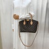 【ハンドル/ストラップ】ヌメ革に薄い焼けや薄いシミ、若干の薄傷がございます。 金具に微細な傷がございます。