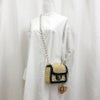 【全体】金具部分に微細な薄傷が僅かにございます。 レザー部分に若干のシワがございます。 ラフィア部分に素材特有の細かなホツレのような飛び出しがございます。 外側上部に微細な汚れがございます。 その他は概ね綺麗な状態でございます。